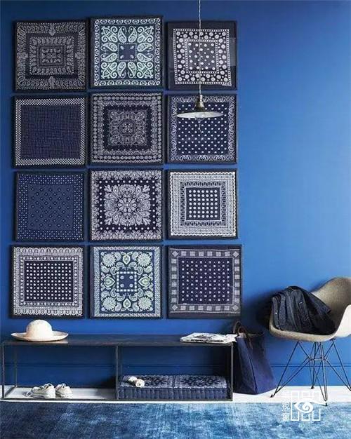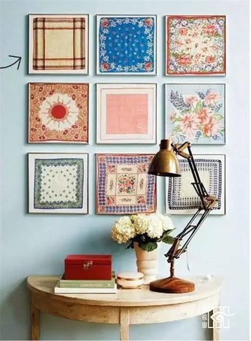 ↑手帕的图案也能组成一组墙面装饰。
