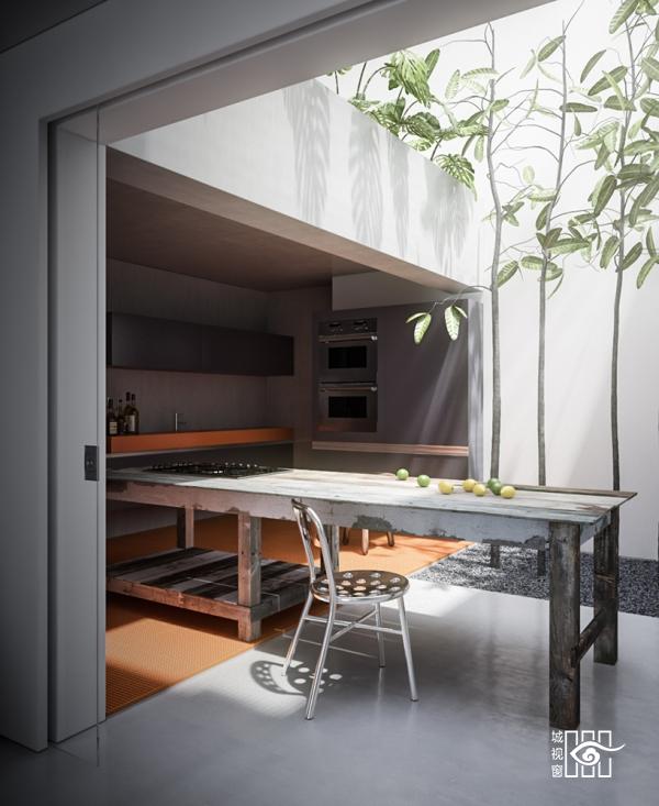人总是各有所爱,有喜欢热闹的也有爱冷静,纤细的长桌两端各置一个椅子,褪去庞杂的厨具,看起来冷清却足够的清醒。