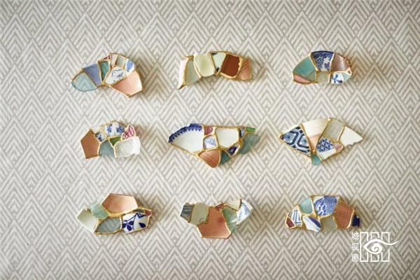 日本女艺术家 Tomomi Kamoshita 利用残缺的瓷器碎片设计了这款筷托,这些瓷器的碎片都是从大海中打捞出来的,经过了长期的海水冲刷,碎瓷片变得更加光滑,光泽度也更好。设计师利用金缮修复技术将这些碎瓷片重新拼凑在一起,形成一种残缺的美感。