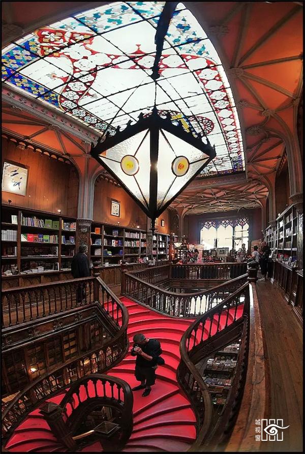 顶层的彩色玻璃窗可以一眼望见波尔图的蓝天,上面用交织文字(monogram)写着“Lello and Brother”(莱罗兄弟),一旁还配有他们的信条 “Decus in Labore” (工作最光荣”)。书架上,知名葡萄牙艺术家的半身像凝视着过往行人,让气氛更肃穆。