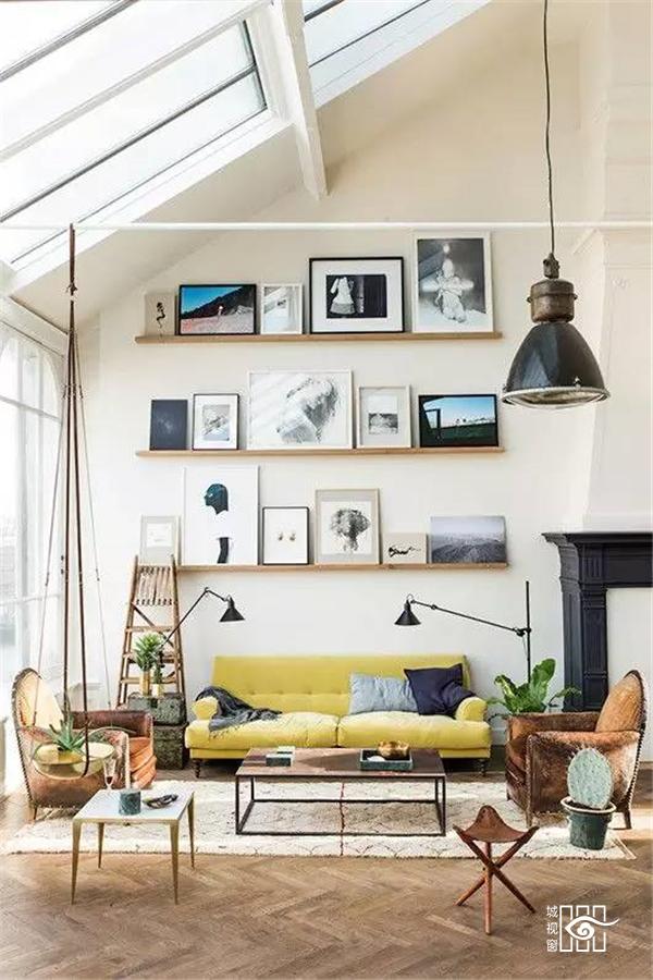或者整面墙都挂满大小错落有致的画,美!