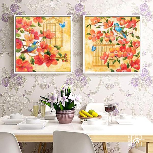 装饰画虽然挂在不同区域,但若这些区域在空间视觉上相通,那么所选的画都要保持统一的风格。包括其画种,是水墨、素描、油彩还是摄影都需要保持一致。其次在装饰画的颜色上也要相映,不能过于突兀转折,画框也是要求相辅相成。