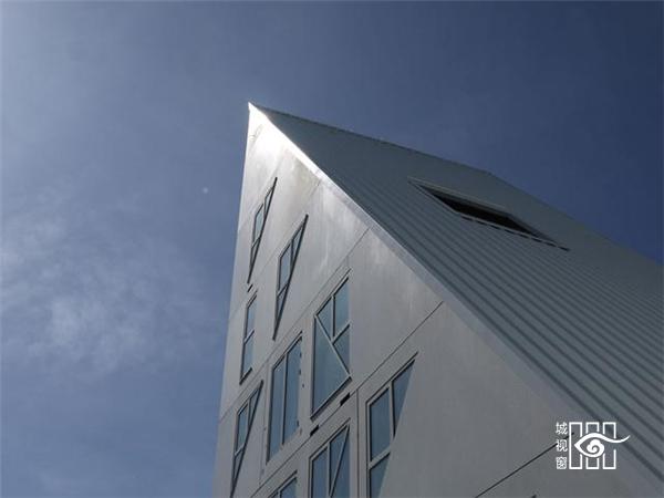 立面都被分为许多自由组合的三角形,用白色的水磨石,构成了动态的效果。阳台上那些温暖色调的木镶板与建筑清冷的色调形成了对比。该建筑的建设始于2008年,预计于2013年初竣工。