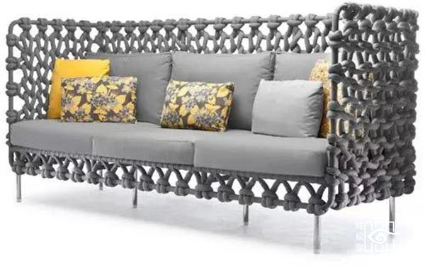 接下来这个沙发采用编织的手法,整个沙发大部分地方被用以绳子编织而成,舒适度也能得到保证,构思新颖是一款设计独到的沙发。