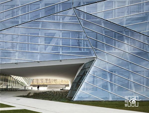 扩建工程需要占据草场和橡树林空间,因此必然会影响现有区域景观,但我们仍希望能够继续保留这片区域的历史、记忆和原有形态。E8大楼中部 镂空,它升起于地面,飞翔在空中,面朝四周风景,让自然风景得以完美呈现。建筑和景观的融合十分重要,同时也是人文精神的体现。然而更为重要的是,将来有一天若自然景观消失,这座人工筑造的玻璃折叠建筑将成为载有这段历史回忆的记录体、寄存器和捍卫者。