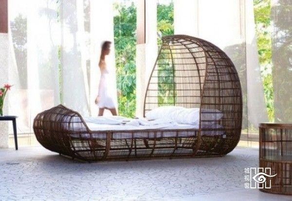 15、在户外,这样的圆形床,加上白色床幔,浪漫!