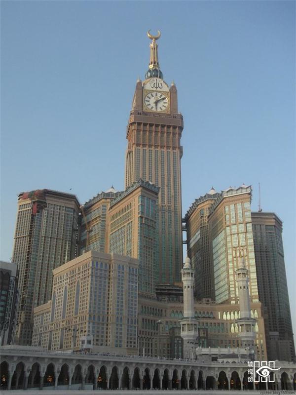 世界第三高楼:麦加皇家钟塔饭店,位于沙特阿拉伯王国麦加市,由德国和瑞士的工程师共同设计,造价8亿美元,建筑层数95层,总高度601米。