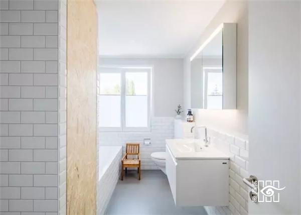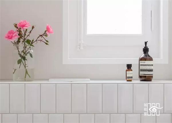 浴室贴了白色的瓷砖,整齐洁净的瓷砖中带着一点怀旧的色彩。