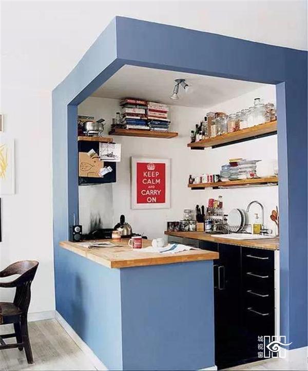 选一个合适的角落,例如开放式的厨房、吧台等,用活泼艳丽的色块大面积“框起”这个角落,怎么样?是不是立刻洋气了许多?