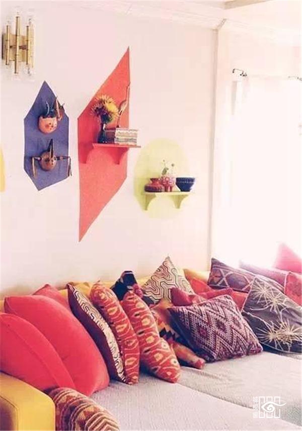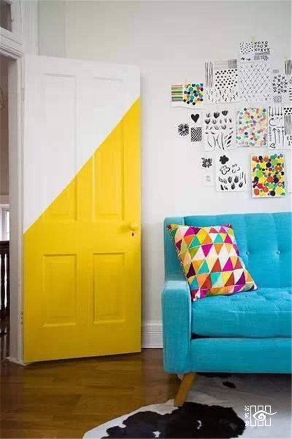 看腻了老套的单色,不如把墙面以对角线分割,刷以跳跃的颜色,更显个性。