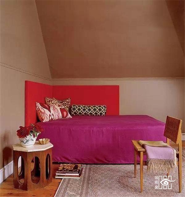 选用和床单相配的颜色来涂刷床头板,卧室周遭的空间瞬间被放大了有木有?!