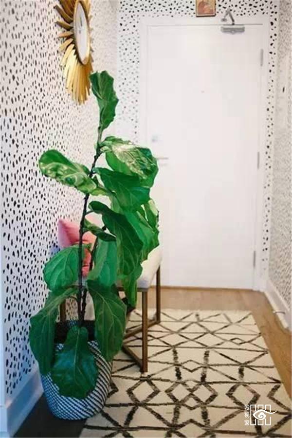刷一些波点等纹路、图案为墙面装饰,“伪装”成贴了墙纸的效果,既美观又能避免墙纸变旧、泛黄等头疼问题。