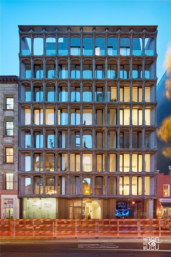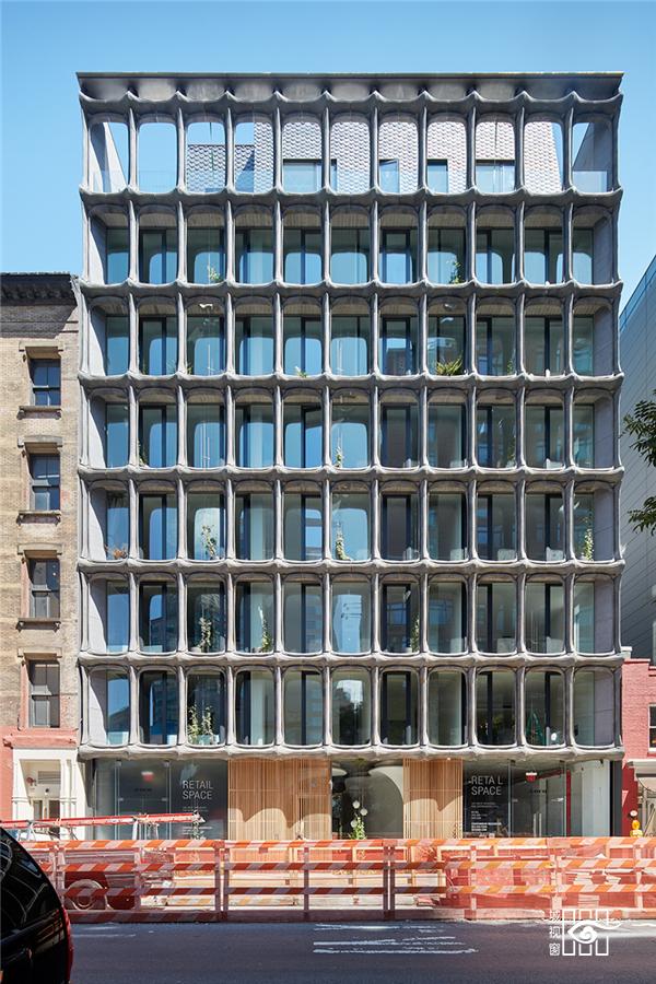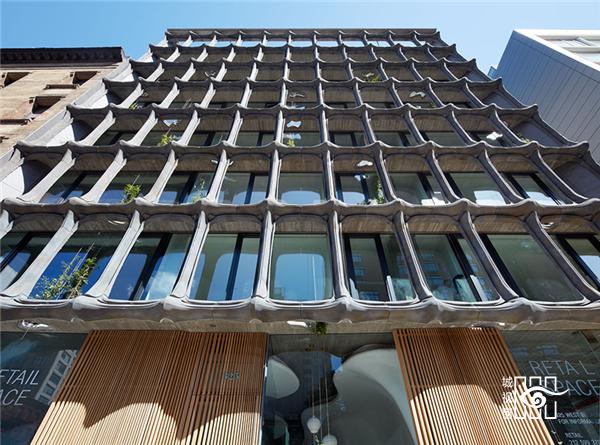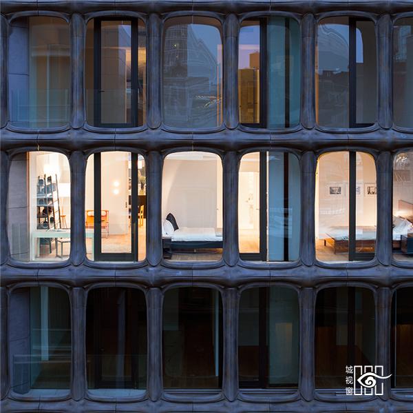 这个地址原本是一座巧克力工厂(XOCO 是加泰罗尼亚语中巧克力的意思),只有 4 层楼,但它的外立面却是新加的。事务所将 4 层楼的建筑加建到 9 层,玻璃幕墙外做了铝制的模块,有点类似于石墙,第一眼看上去时很容易想到西班牙建筑师高迪的巴特略公寓,但少了彩色的装饰艺术和丰富的意象。