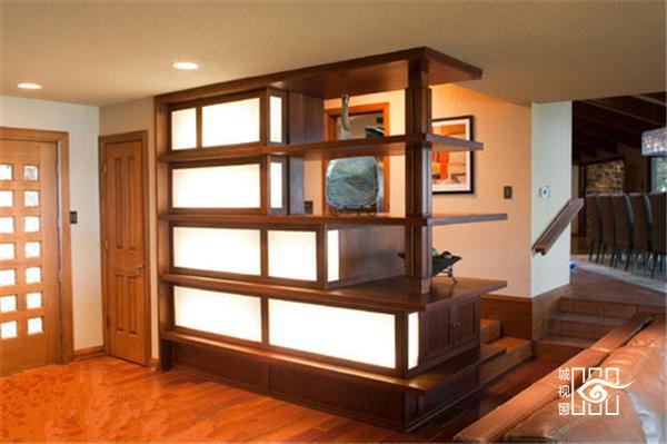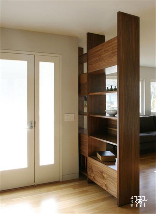木质展示柜隔断,用家具作为隔断,可以达到一石二鸟的效果,家具不仅为成为了玄关的隔断,同时也发挥着其本身应有的功能。