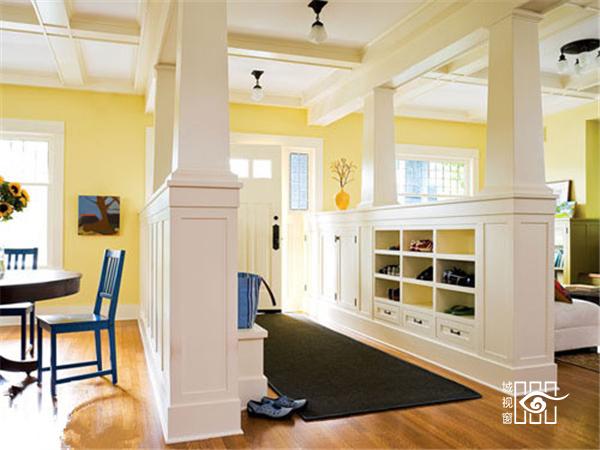 半墙小隔断,整个玄关区域被打造成了收纳功能十分强大的储物室,这样能让空间更为通透,又能起到划分作用。