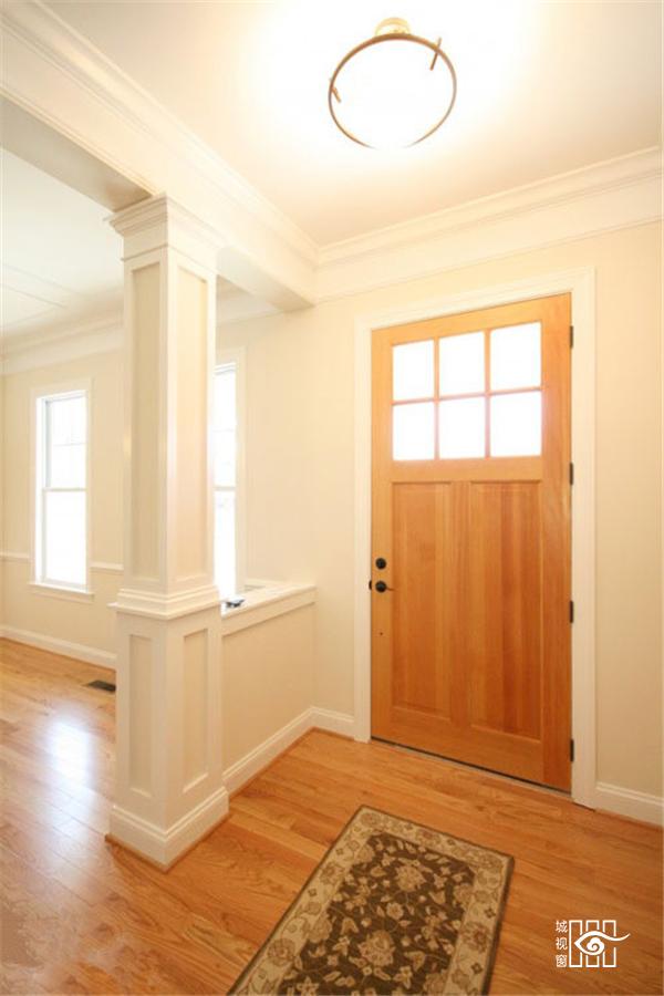 简易半墙隔断,极具北欧风情的木质大门,结合上美丽的房柱,必要时还能充当桌面,增添出入的便利。