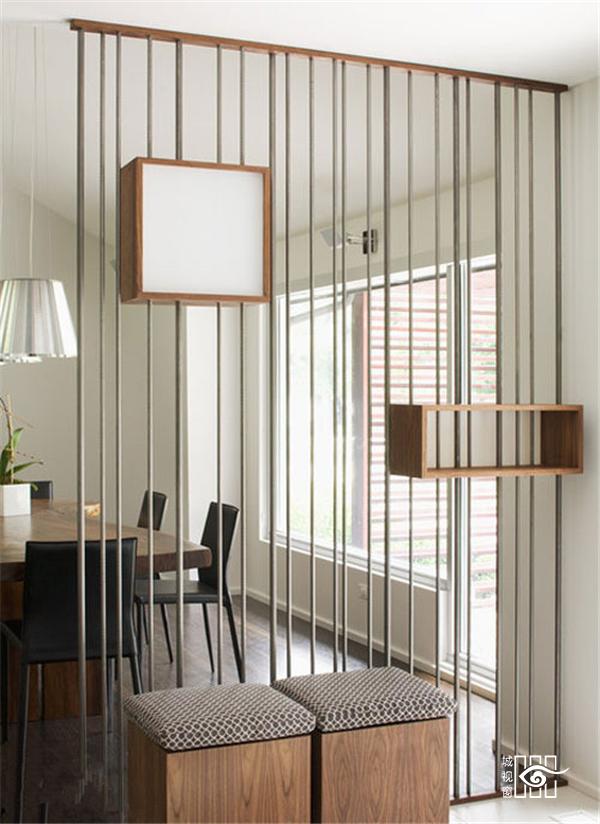 通透的线条状隔断墙,这样若隐若现的设计,既能保证空间通透的宽敞感,又可以起到美丽的装饰作用。