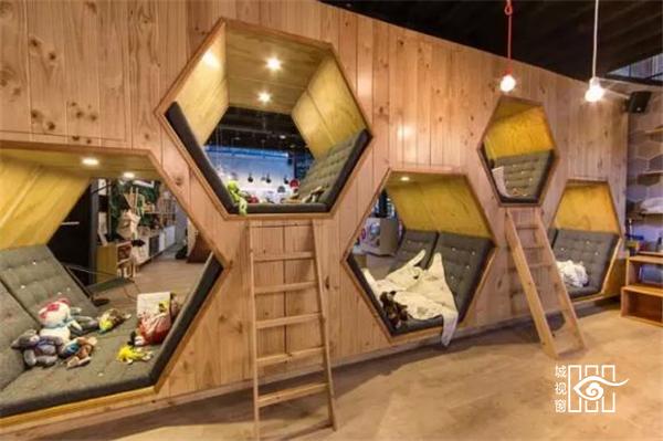 4.书店&咖啡馆的创意阅读室,六边形构造出来的私密空间,很有意思不是吗?躺着、坐着,怎样舒适你怎样来!