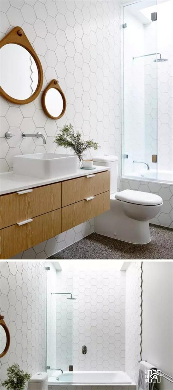 7.浴室里的白色六边形瓷砖,相比于马赛克,这种纹理是不是很优雅。