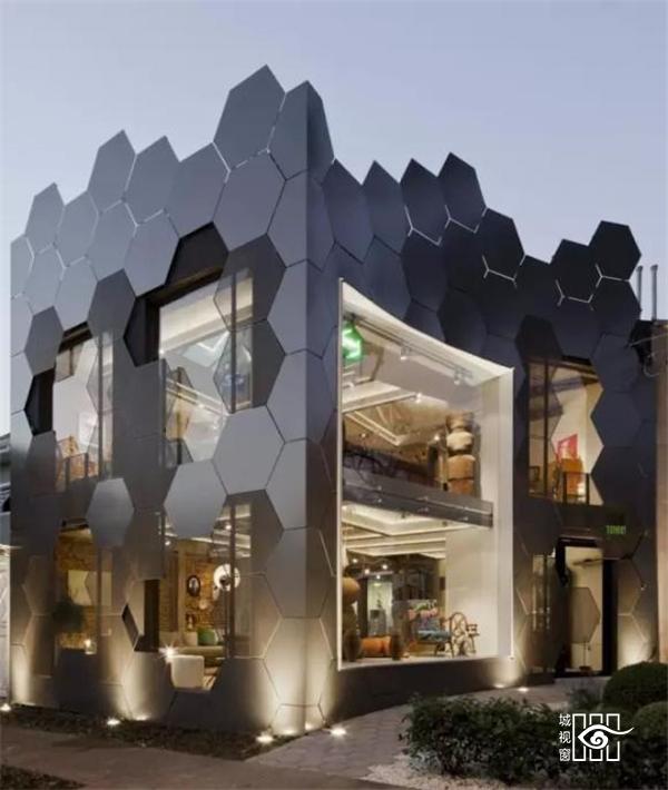 8.六边形拼接的外立面,现代感十足,拼接的缝隙还有窗户附近网状的六边形使外立面显得通透,不死板。