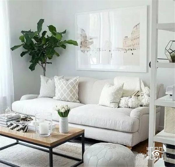 ▲ 现代简约风格的客厅里,白色的陶瓷花盆才没有违和感。