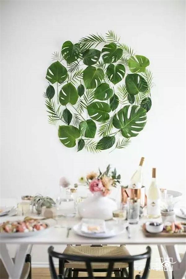 ▲ 利用龟背竹天然镂空装饰的墙面,很容易成为视觉的焦点。