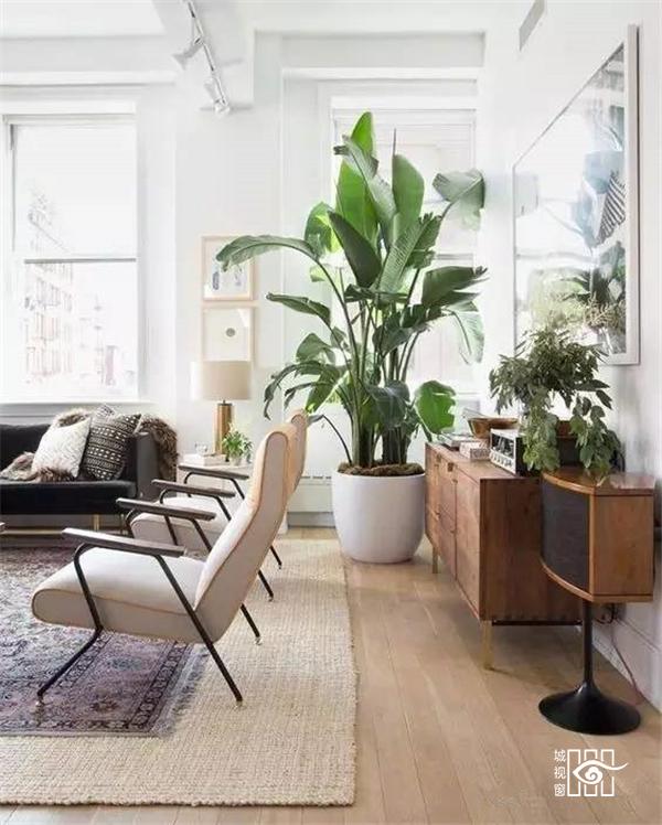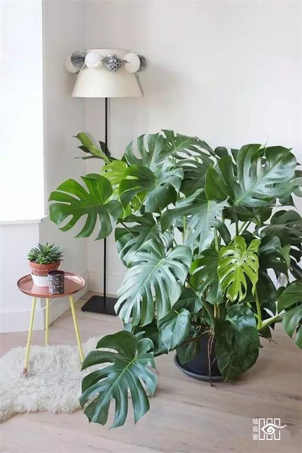 家居搭配中,常利用龟背竹张扬的姿态和天然的艺术范儿来提升空间的活力和艺术感。