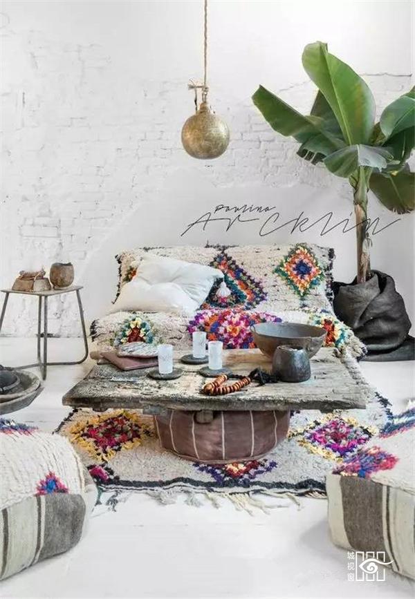 ▲ 复古民族风的空间里,一个设计感十足的花器才相配。