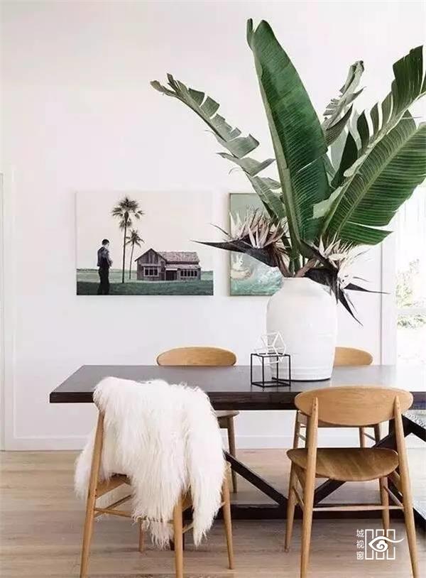 ▲ 餐桌上的大鹤望兰有着“舍我其谁”的气势,它的存在让餐厅更加饱满。