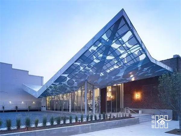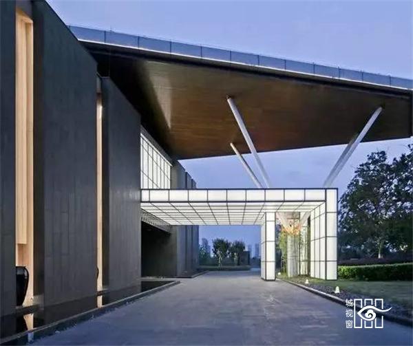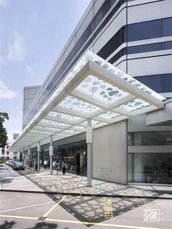 雨棚,从功能上来讲是设在建筑物出入口或顶部阳台上方,用来挡雨、挡风、防高空落物砸伤的一种建筑装配。但在建筑师的眼中却被玩出了花,雨棚作为建筑物入口的一种功能型构件,在造型的设计上可与建筑外立面相呼应,也可以独立于建筑,形成一种装饰型构件通过雨棚有意图的形成一种独立、个性的空间为建筑的入口增添神来之笔。