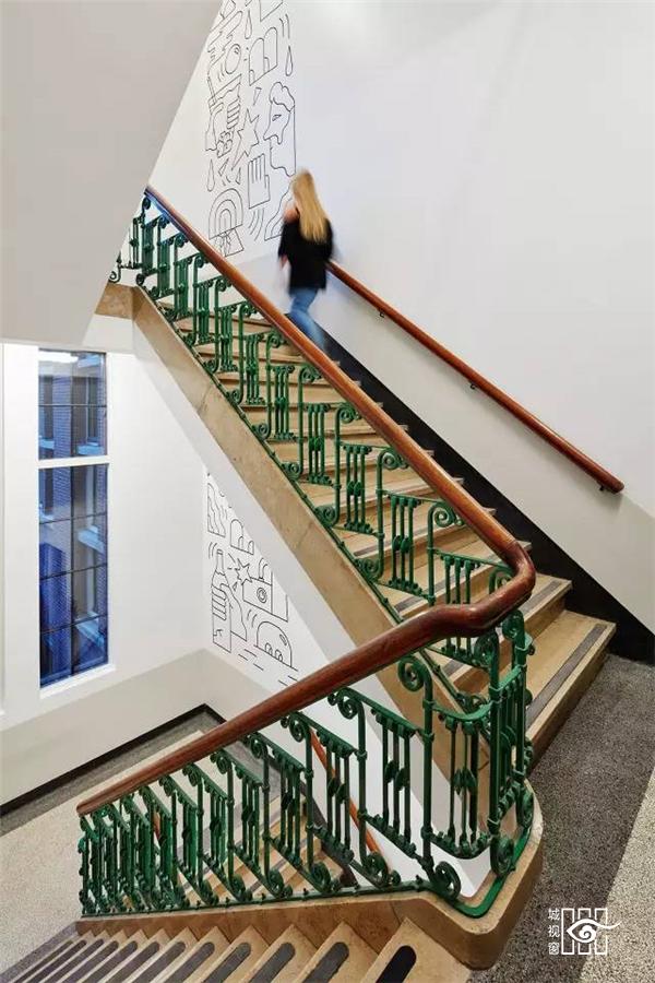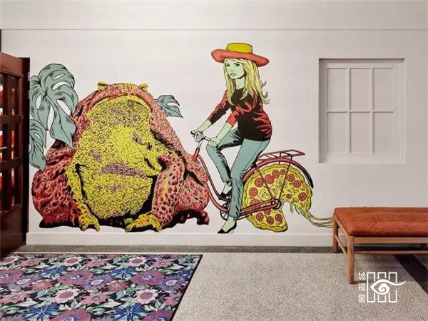 随处可见的简洁手绘涂鸦成为白墙的唯一装饰,但位置和颜色以及样式都结合周围的环境做了精心的设计,抢眼且和谐。
