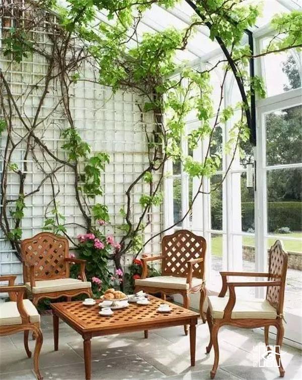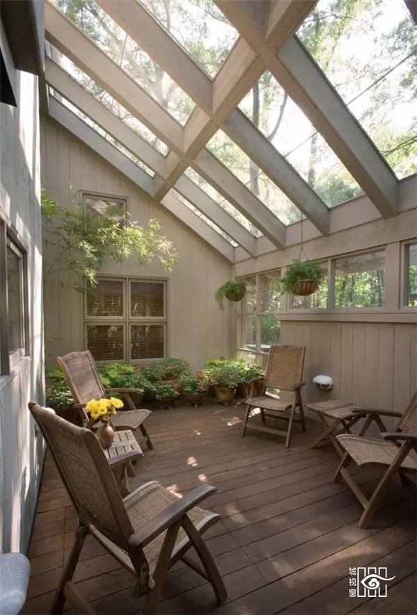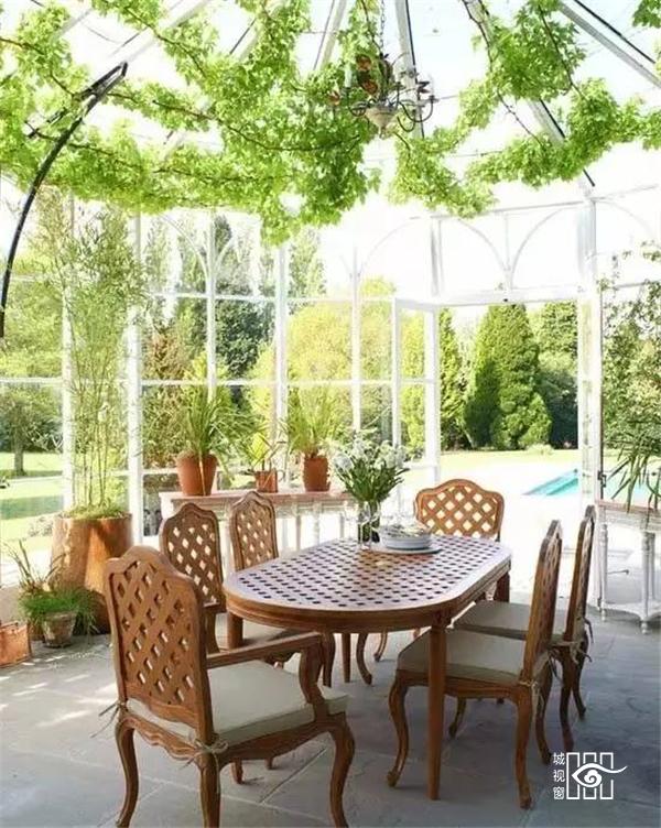 在庭院或屋顶建一间阳光房,闲暇之余和亲人朋友在里面喝茶聊天晒太阳,舒适、惬意,它会让你的朋友流连忘返,乐不思归!