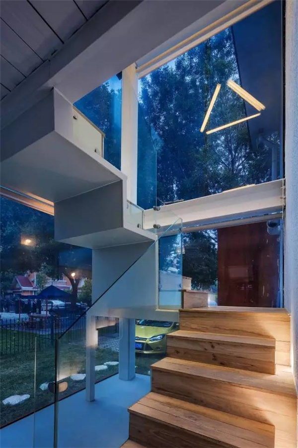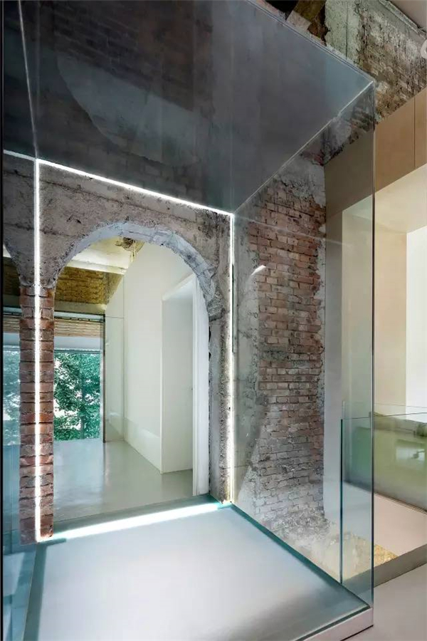 符合当时的生活方式却不带有时代发现的特点。因此当设计师看到这个房子的时候第一个感觉是和当下的人,以及人的生活格格不入。所以设计师崔树在改造过程中保留着原始的建筑特征,在一条切割时间的线下构成新旧元素的对比反差,贯穿于整个建筑内,让他们之间形成不同年代的对话。