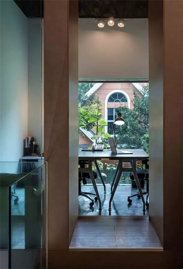 当时设计师崔树团队面临的最大的问题就是里面太陈旧了,当把墙面内保温拆除后,裸露出来的都是当时年代所建的红砖结构,而且每一个格局都很小。后来设计师崔树团想到把它里面的房间串联起来,拆掉一切可以拆除的墙体,空间之间没有门的阻隔。将原有的窗下台全部拆除,改成出入口,这样所有的工作人员都从外廊通过进入室内。