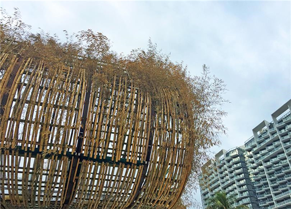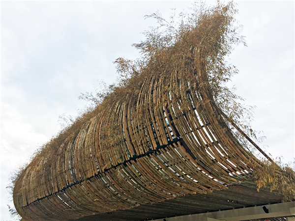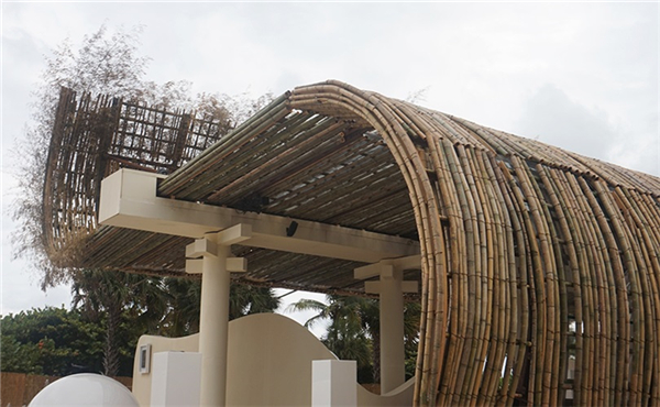 弯曲的屋顶由1300根竹条搭建而成,屋顶位于介于21号街、22号街以及迈阿密海滩之间的海边空地上。竹条地从地面向天空呈S形温柔延伸,形成一个温馨的展区。黄昏后,灯光照亮这里,温和的色调温暖着每一根竹子,反佛一座海滩和远方的灯塔。艺术家描述作品说:“我从自己多年的创作经验中寻找灵感,通过与100多名艺术学生团队的合作来实现该艺术作品,我很高兴,只是经过短短一年,作品已经从图纸变成真正存在的实物作品。”