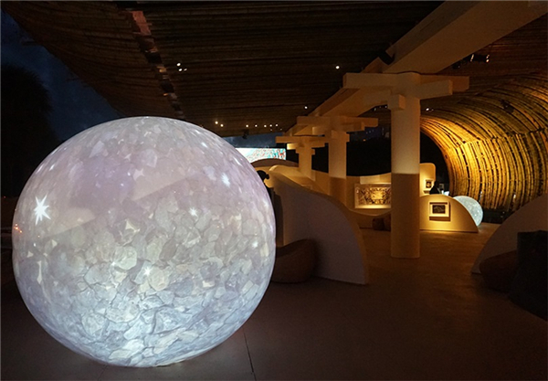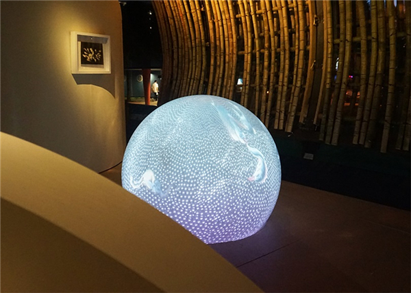 球形灯光投影装置作品穿插出现在展览空间里