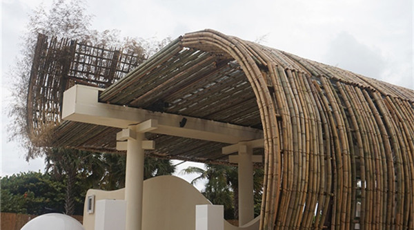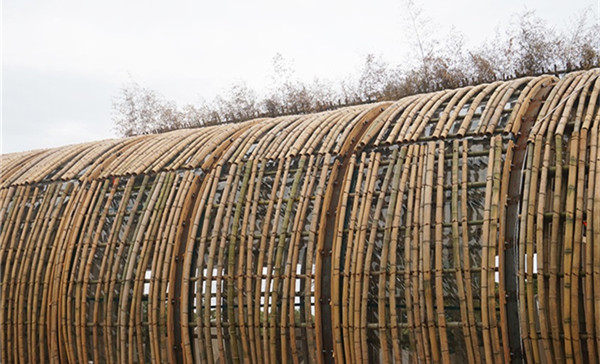 弯曲的屋顶由1300根竹条搭建而成