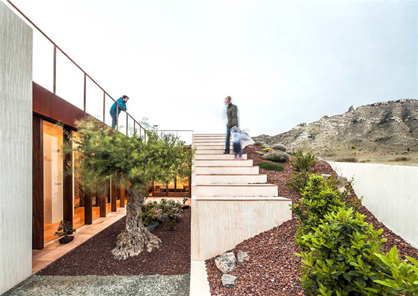 最终的结果是一个强调建筑本身的白色构筑物,嵌入到地势中,与花园,庭院,室内空间以及平台交织在一起,创造了体验空间以及联系景观的不同方式。