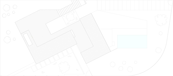 房子的平面是S形,与场地西面的边缘结合在一起,入口也在这边。进入场地之前必须要先经过住宅,这样一来也保护了泳池。