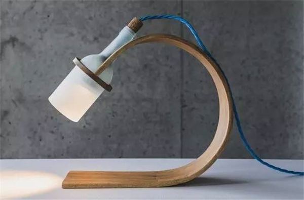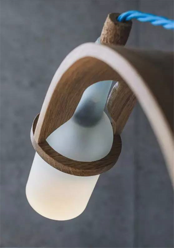 Max Ashford的灯,磨砂玻璃瓶与弯曲木头的结合。