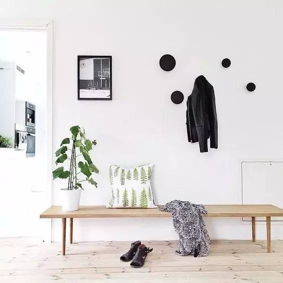 玄关处能挂多少衣服?玄关又不是衣柜,挂一两件还不行吗?力推这种圆形纽扣挂钩,平时不挂衣服的时候也像一件 墙 壁 艺 术 品 。