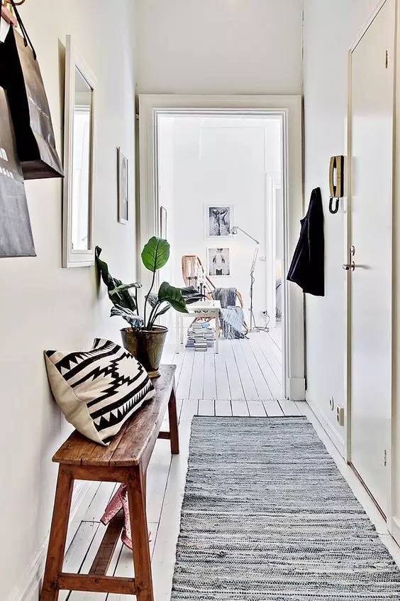 长毯在中国家庭不常用,但它非常非常好,主要有两大用处:一是可以在脱鞋的时候防止外面的灰尘进入客厅,长毯有效的吸附了外来的尘土。二是更明确的确立“玄关区域”,尤其是在很多家庭中,玄关被客厅包括的情况下,一 条 长 毯 可 以 明 确 区 域,告诉你穿着鞋的你可以走多远。