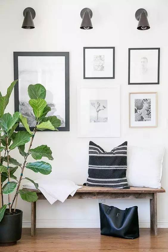 玄关是一进门的地方,也是得瑟的黄金地段。古时候人们在门口放屏风,除了挡风的基本功能以外,其实另外一个更为重要的作用也是[得瑟品位],这真的是从古至今大家都非常热衷的事情。现代玄关同样如此,如果墙上有地儿, 挂 几 幅 画 吧,取悦自己。