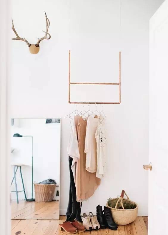 觉得衣帽钩太平常,可以改造水管来悬挂衣服,工业味道很重。