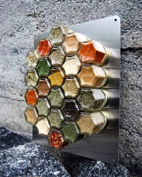 调料瓶也能贴在磁铁条上,不过瓶盖必须是铁的才能吸上去。