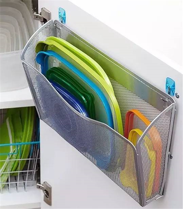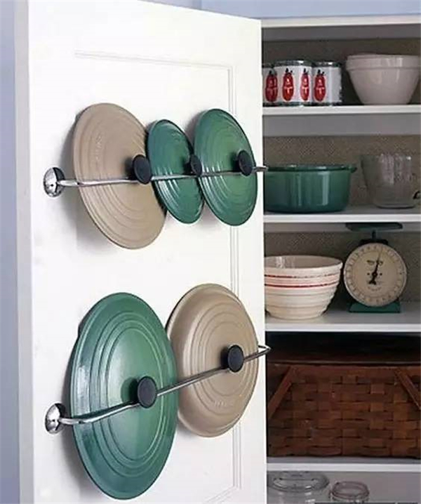 横杆不止能挂东西,还能搁挡一些锅盖。这样放锅盖,再也不用听到乒乒乓乓乱响的声音啦!