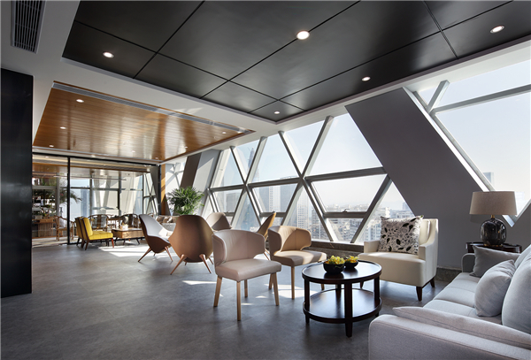 在功能分区上,设计师将整个空间分成开放式办公区、休闲区、洽谈区、茶室、培训区、VIP接待室、会议室等几个主要功能区。开放的工作环境与舒适的公共空间与业主的诉求相贴合,各功能区之间相对独立,同时经由开放式空间衔接与过渡,使之与外界环境达成流畅的互动和交流,让空间划分更加灵活,最终实现空间整体的平衡与统一。