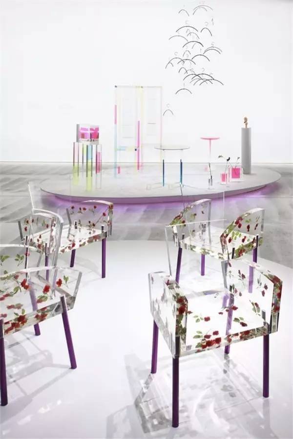 这把椅子让仓俣史朗闻名与世,椅子的名字取材自电影《欲望号街车》中女主角的名字布兰奇·杜波依斯。所有部件都由丙烯树脂制成,这在当时是最新的材料。有机玻璃的玫瑰花镶嵌在有机玻璃的椅面和扶手,这几朵玫瑰似乎是他最热情的设计了。