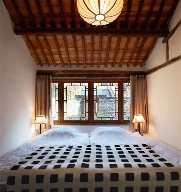 娜尔苏在设计和创意上的热情支撑了她改造的四年。她没学建筑,学的是染美和服装,山里逸居是生平第一个建筑作品,考虑与兼顾到了她能想到的所有细节。室内软装亲历亲为,石、砖、木头都是当地取材,当地人做。所有的老宅加了上下水,做了厨房和洗手间,请来工匠垒上两米高的石墙;村里有水库、有河流,却没有自来水,她为每个宅院做了储水的水箱。不过五个宅院,院院各不相同,装饰细节各有侧重。“山脚下”“半坡”“石房子”隐于村落47户人家之中,娜尔苏在屋里的装饰上做了很用心的设计,雕花木桌椅、板凳,宫格窗户,梁上的吊灯,用纸糊天花板……房子里隐藏着许多细节上的惊喜 。“坡上”居高俯瞰,视野不一般,娜尔苏在室内的装饰趋于简洁大方,没有过多细节,“反正大家来了就直接冲到院子里”。院子是围着树造的,只不得已砍掉一棵。层叠的山、蜿蜒的长城、累累果实挂满的果树、午后透过枝叶的斑驳阳光、可以透过屋顶看到的星星就是“坡上”的主要关键词。“老钱家”坐落山脚下的水库边,不能一览众山小却能隔岸观水,于是这里有了宽阔的水岸露台。