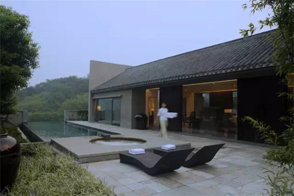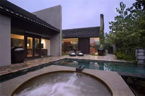 高耸的石墙和葱郁的植物将度假屋围合得私密非常,度假屋外是一方足可开泳池派对的私人泳池及一个可灌满汤山温泉的汤池。不管裸泳、静心、亲子,还是温泉趴,一切悉听尊便。